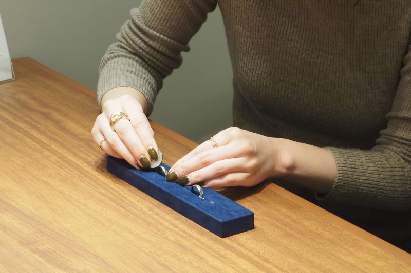 指輪やダイヤモンドの輝きをしっかり確かめられるよう、店内の壁や天井の色、照明の角度など、細部までこだわられた空間とのこと!
