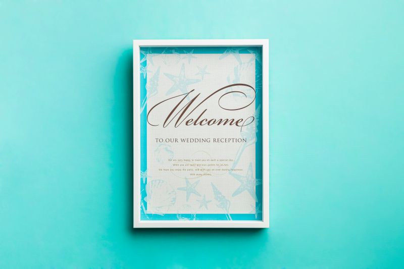 パネルの大きさやデザインに決まりはありません。しかし、会場でセッティングする際に設置できる場所がない、設置場所に対してウェルカムボードが大きすぎる、などのトラブルを避けるため結婚式場のスタッフと打ち合わせが必要です。