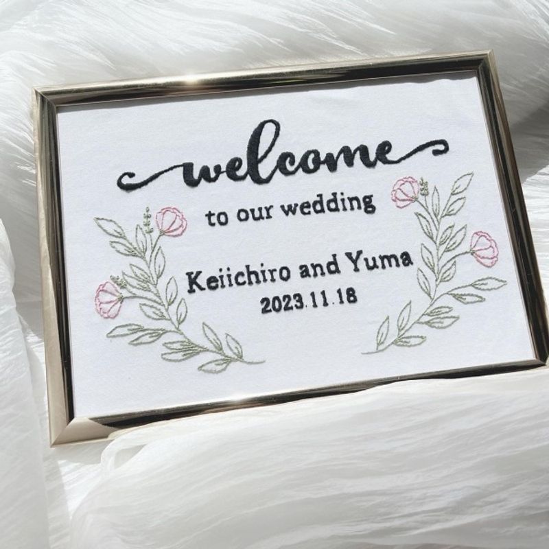 温かみのある刺繍でできたウェルカムボードは、優し気な雰囲気を演出してくれます。挙式まで時間があり、刺繍や手芸が得意な方は挑戦してみては?