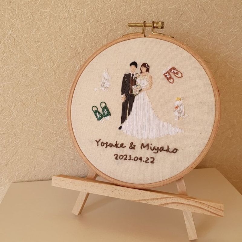 こちらは投稿者の方がご友人の結婚祝いとして刺繍で作ったウェルカムボード。