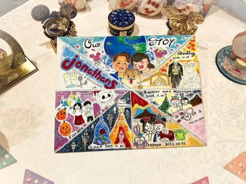 お洒落なイラストでふたりのこれまでが描かれていてとっても素敵ですね。