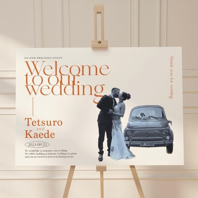 WELCOMEの文字は実はカラードレスの色になっており、スタイリッシュながら遊び心もたっぷりな仕上がりに。