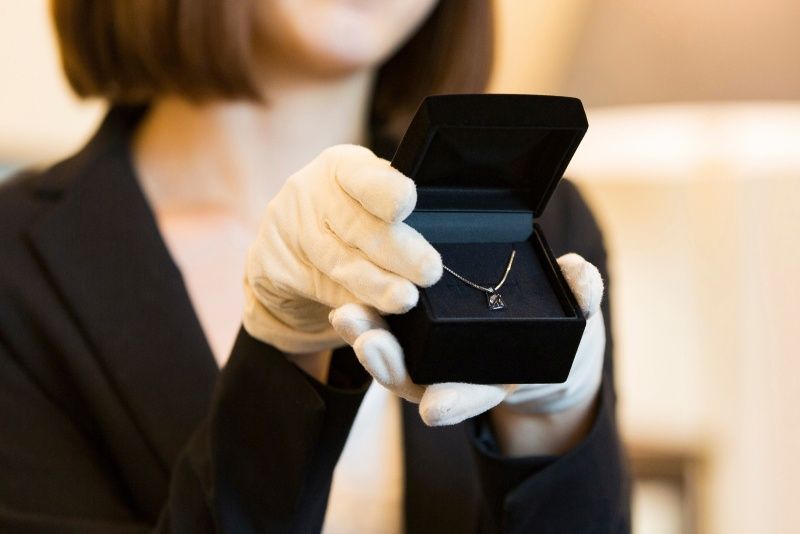 鑑定書つきのダイヤモンドネックレスであれば、婚約の証として贈るにふさわしいものと言えます。