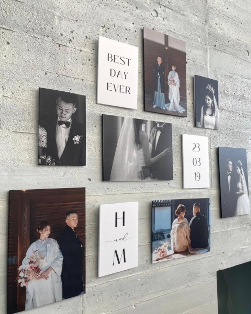 フォトパネルは、前撮りの写真やふたりの思い出の写真を、パネルにして壁に飾る演出です。