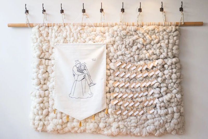 存在感のあるオリジナルタペストリーを、ウエディング仕様にして飾るのも、とってもおしゃれですよね。