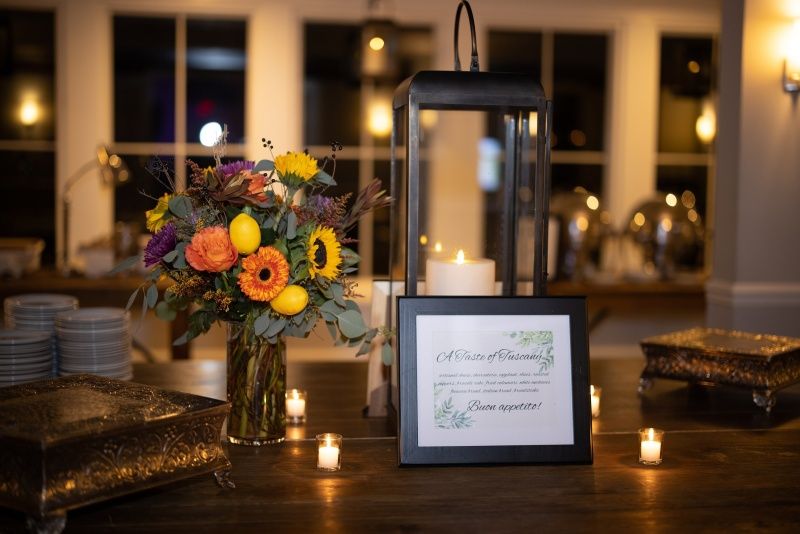 キャンドルを飾るのも、華やかでおしゃれなウェルカムスペースの装飾アイデアです。