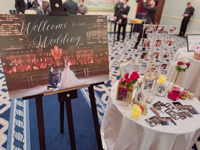 フォトフレームとあわせて装飾することで、よりおしゃれなウェルカムスペースにすることもできます。