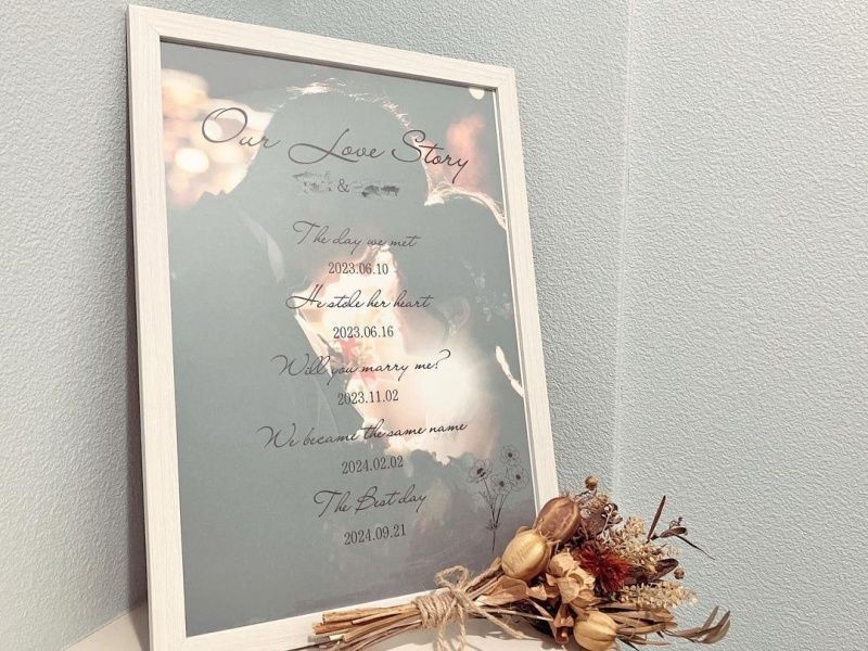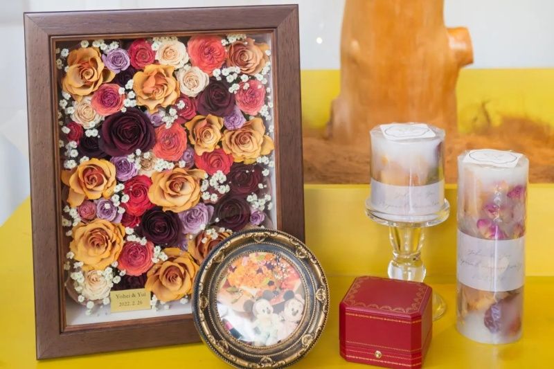 ふたりの写真や思い出の品などと一緒に飾ると、よりふたりの絆を感じることができる演出になります。
