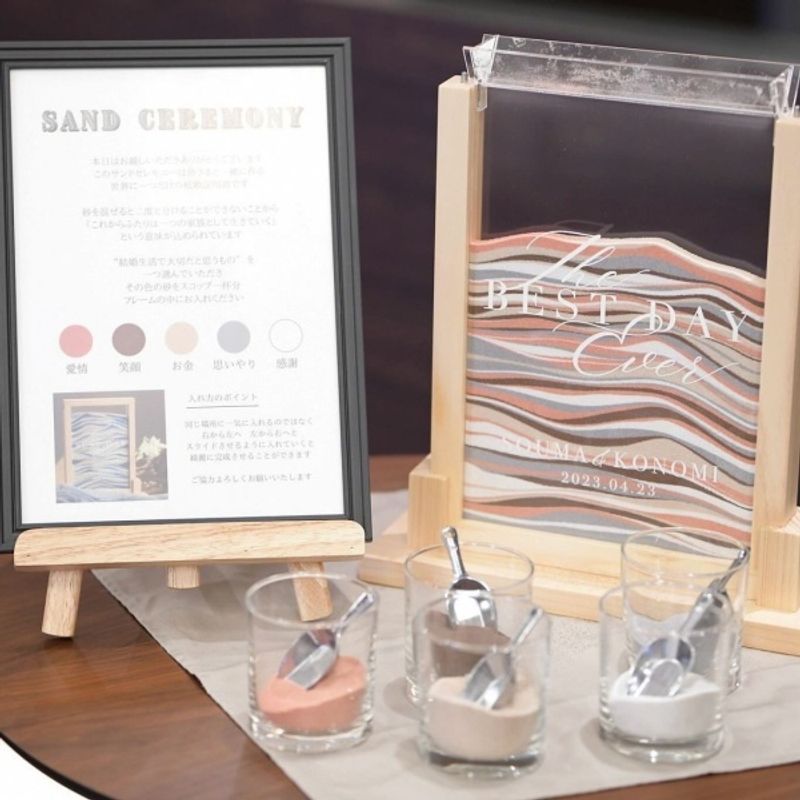 砂のカラーや量は自由なので、ゲスト同士でもコミュニケーションが生まれる演出です。