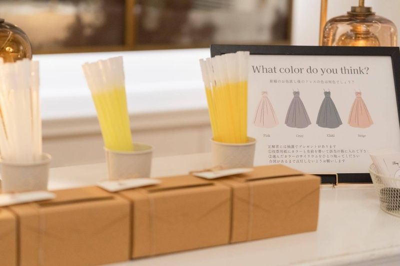 こちらは、新婦の披露宴ドレスは何色かを予想し、その色のサイリウムを披露宴で一斉に光らせる、ちょっとワクワクするようなもの。
