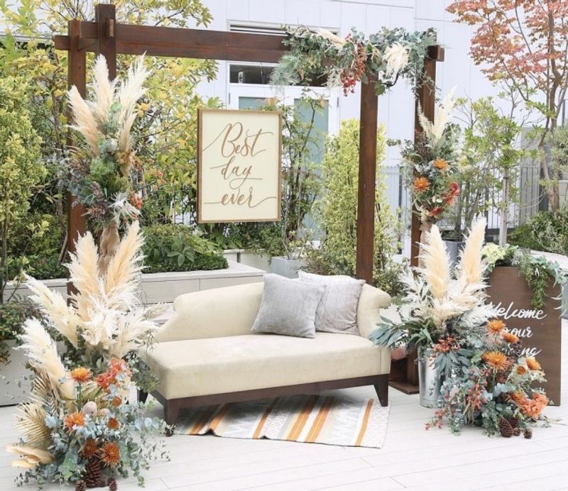 フォトブースを作ることもでき、ゲストたちが写真の撮り合いなどで楽しめるスペースにぴったりです。
