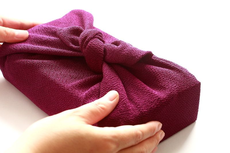 紙袋に入っている時は袋から出し、風呂敷などに包んでいる時は包みを外してから、正面を相手の方に向けて差し出します。