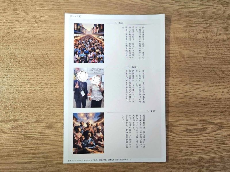 こちらのコーナーでは、ブースに訪れた人が選んだ写真から、AIが過去と未来を生成してくれるイベントを開催しています。