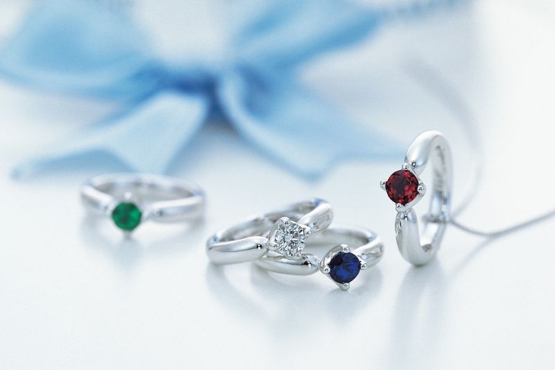 カラーストーンがあしらわれた銀座ダイヤモンドシライシオリジナルの「リングチャーム」とセットになっています。