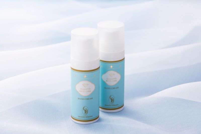 ダイヤモンドの直接仕入れを行っているシライシとエステティックサロンで共同開発したオリジナルの「ダイヤモンドリッチケア ハンドクリーム」。