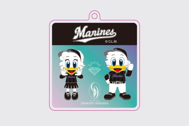 千葉ロッテマリーンズのマスコットキャラクター「マーくん&リーンちゃん」と銀座ダイヤモンドシライシがコラボした「オリジナルチャーム」。