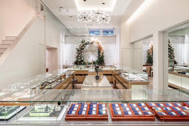 今回の移転リニューアルオープンをきっかけに、さらに指輪選びをきっかけとしたプロポーズやフォト、本格挙式など多様なカップルの需要に応えられるショップへと進化しているgarden心斎橋店。