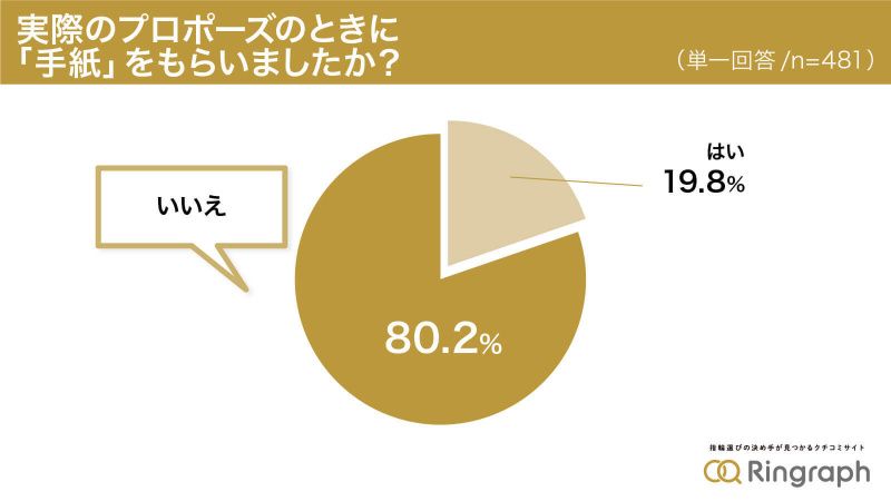プロポーズの時に、実際に手紙をもらった方は全体の約2割で少数派。