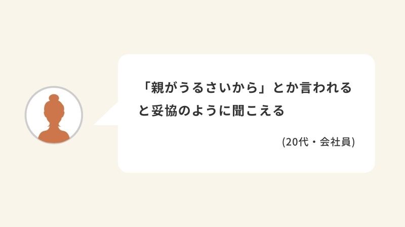 次に避けるべきは、「親がうるさいから結婚しようか」や「もうそろそろ結婚でいいよね」などの妥協ともとれるようなセリフ!