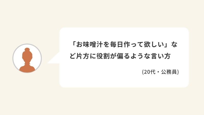 「プロポーズで言われたくない言葉を教えてください」という問いに対して、回答の約3割を占めたのが「お味噌汁を作って下さい」系の言葉。「ご飯を作ってください」も同様に要注意のセリフです!