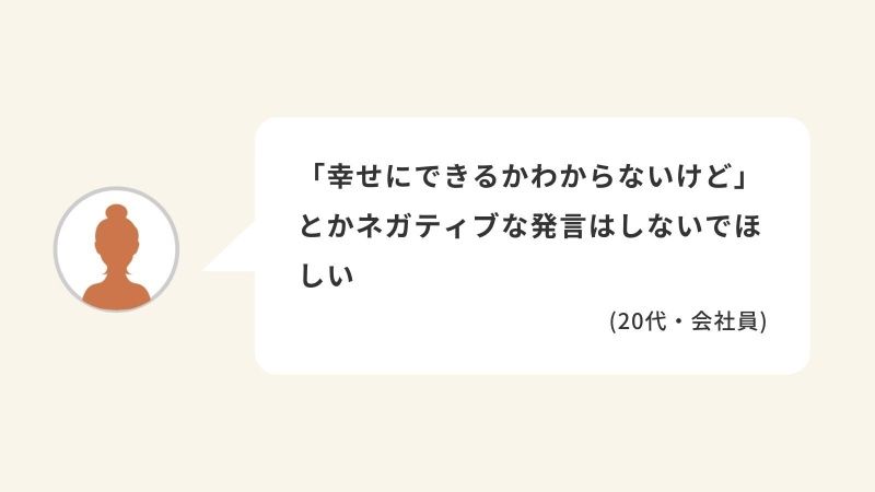 「幸せにできるかわからない」や「お金に困ると思うけど」などという前置きはしないほうが無難です。