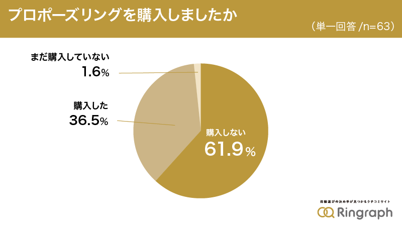 リングラフが実施した「婚約指輪・結婚指輪の購入費用に関する実態調査(2021年8月)」によると、約4割の方がプロポーズリングを購入する(購入予定も含む)ことがわかりました。