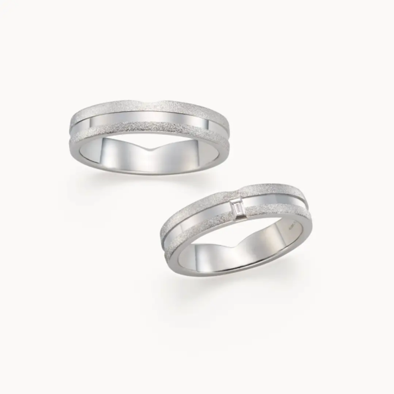 ホワイトゴールドにマット加工を施したクールなデザイン。