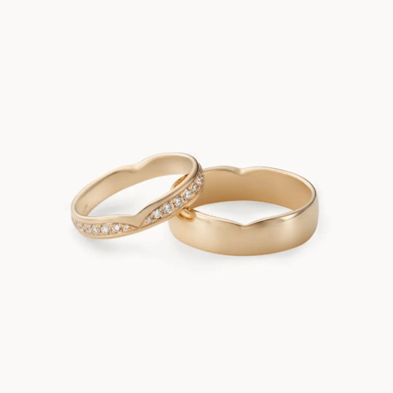 指輪を外すとハート型が現れ、指輪をはめるとそのハートが緩やかなウェーブへと姿を変える仕掛けが、とても魅力的です。