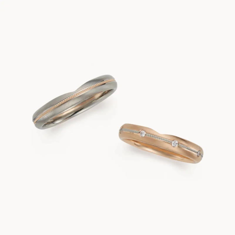 メンズリングはレディースリングと色を反転させ、落ち着いた雰囲気に仕上げられています。