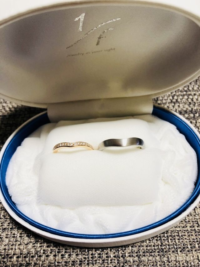 私の指輪にはダイヤモンドを追加して頂き、彼の指輪はつや消し加工にしてもらったりといろいろ選べる事が多いのもよかったです。