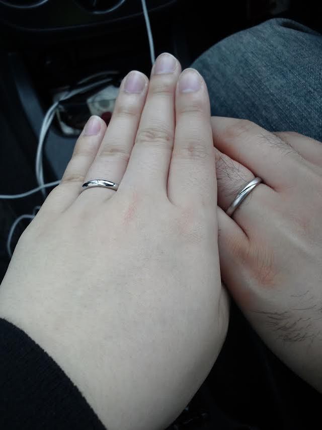 主人と見た目がシンプルなものがいいと言っていたのでこの指輪を見てすぐにいいなと思い、つけ心地もよかったのでこの指輪にしました。