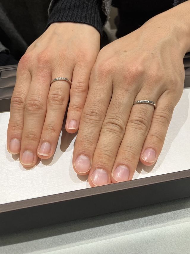 シンプルですが、ダイヤモンドが入っていて、どこにでも付けやすいかと思いこちらにしました。また、指輪診断をしていただき、こちらの指輪をおすすめされ、自身