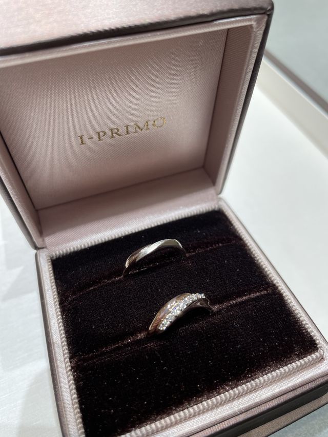 本当は違うブライダル指輪専門店の目星を付けていた指輪にしようと思っていたが、やっぱり最後に比較した結果、より2人のお揃い感と他と被らないデザイン、年老いても飽きない&手に負けないデザインだと思った。