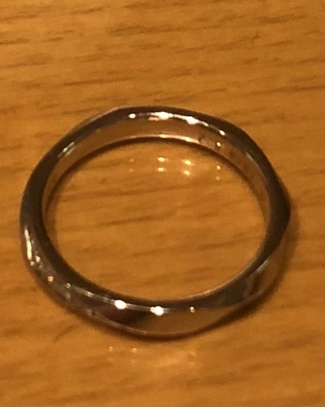 指輪の一周にデザインが施されている。そのため、指輪の向きがずれても、綺麗に見えると思ったのが1番の理由です。婚約指輪と重ね付けしても綺麗に見えるのと、派手過ぎず長い年月をつけることを考えて選びました。