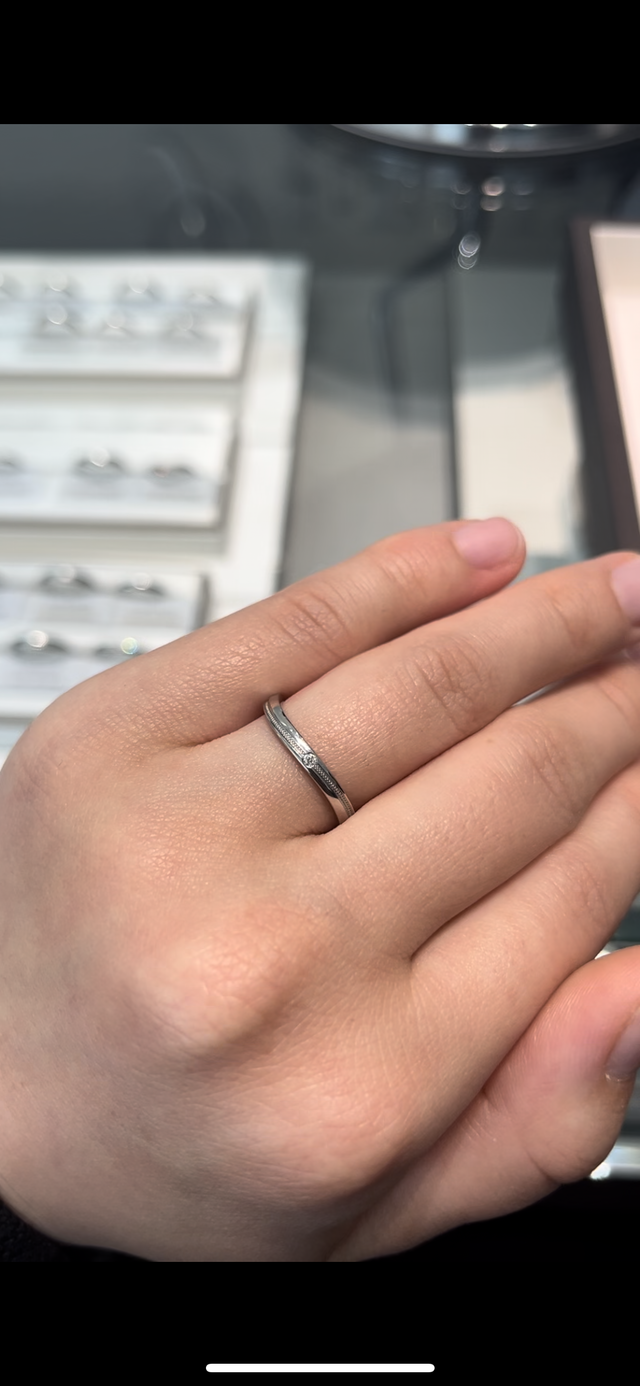 水かきが広いようで、S字カーブの指輪の方が試着した際にしっくりきました(元々はストレートを購入しようと考えていました)。アフターケアがよく、一生使うものとして納得と安心感のあるブランドがいいなと思っていましま。