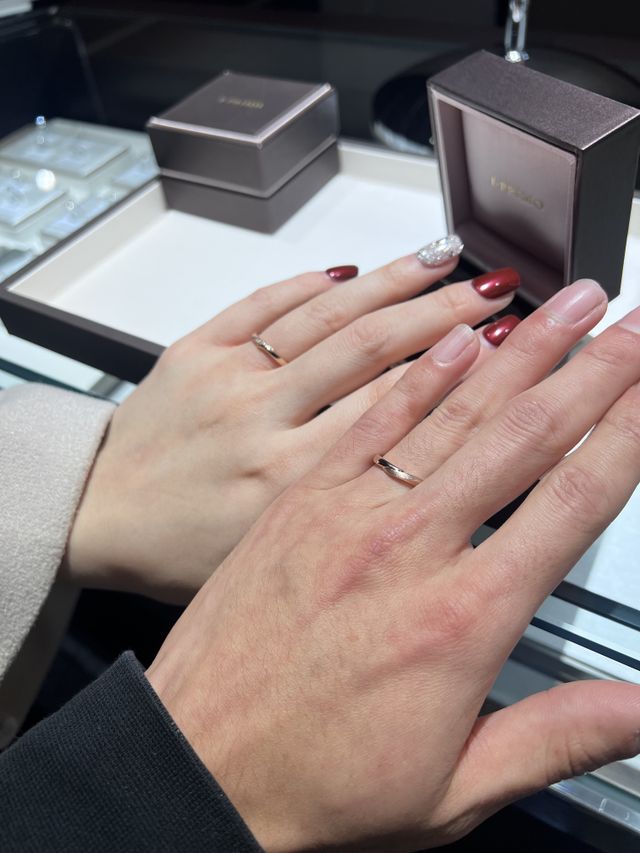 お店の雰囲気が良く緊張してましたが話しやすくすごい対応してもらいました。待ち時間もなくスムーズにいきました。電話対応も良く聞き取りやすく、丁寧に対応していただき、わかりやすい説明と自分たちに合った指輪を一緒に探してくれたこと