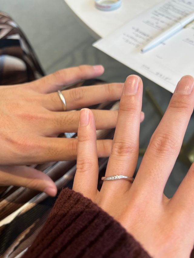 つけ心地が一番良いと言われたリングを試着しましたが、着けていても全く違和感がなく魅力的でした。
