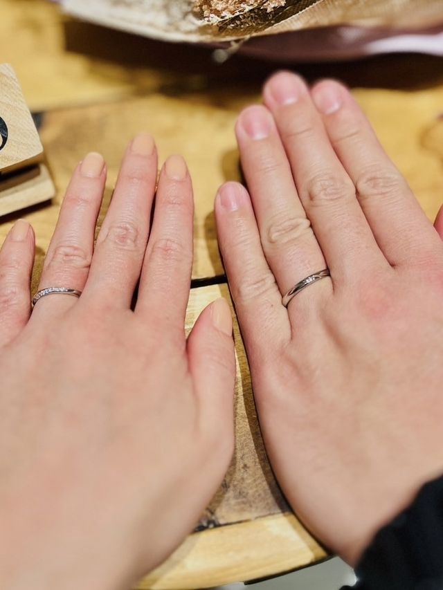 基本的にはシンプルだけど女性の指輪にはダイヤもあしらわれていて華やかに見える。