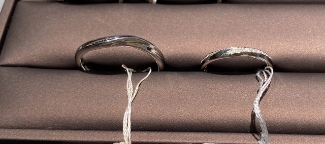 指輪はストレートですが、そこにななめにラインが入っていてダイヤモンドが散りばめられているゴージャスなデザインでした。正面だけにダイヤモンドがある指輪とは違い、左右どこから見ても輝きがあるので特別なデザインだと思います。