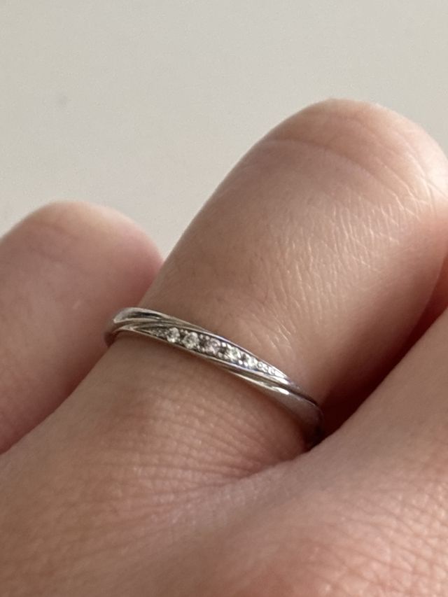 シンプルでつけやすいです。ダイヤの色や量を選択できたので、オリジナルな指輪を作れてとても満足しています!旦那さんも、普段使いしやすいからか、毎日指輪をつけてくれています。内側に入れたダイヤモンドも、意味があって素敵な気持ちになります。
