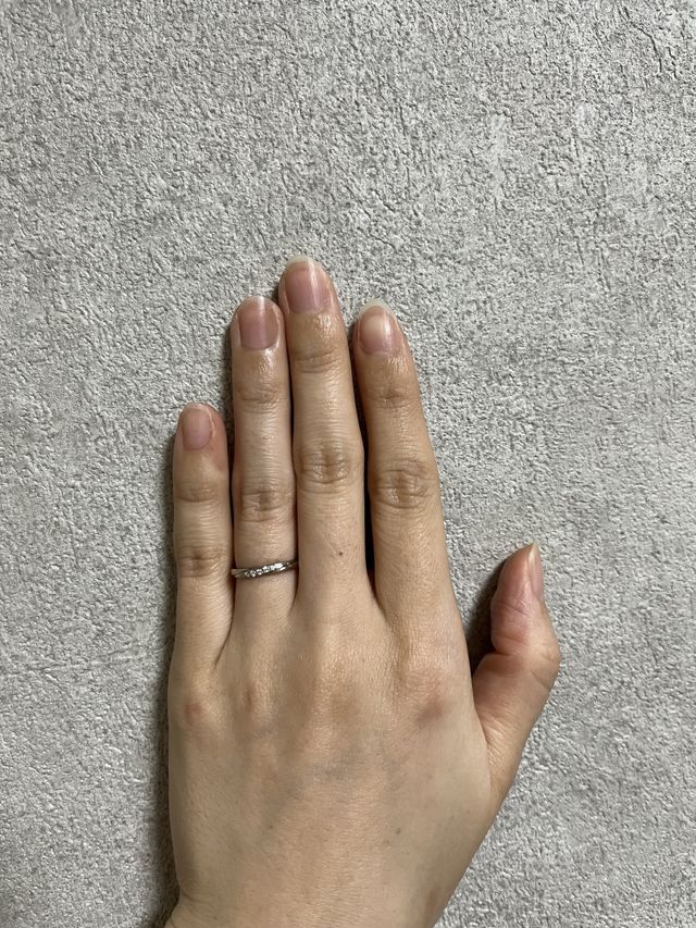 リングの太さも、太すぎず女性らしい細さで私の指が細めなのですが、違和感なくつけることが出来ています!