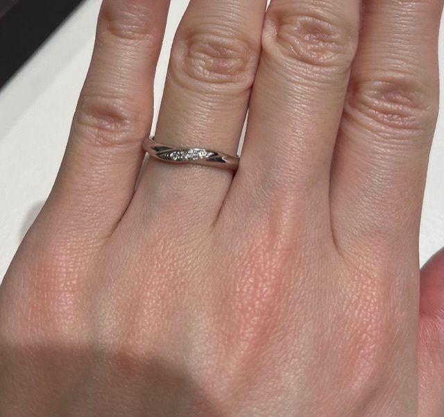 結婚指輪はこの価格帯が良い、という明確な金額があったので、その範囲内で探しました。他の条件としてはウェーブタイプであることと、ダイヤがついていることです。最後2つで迷いましたが、ウェーブの角に丸みがあり柔らかい印象になるのが好みと合いました。
