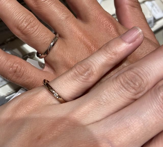 パーソナル診断でもでてきた、ウェーブの形がすごく指にあいました。石もさりげなくついていて、シンプルすぎずお気に入りです。色もピンクゴールドでとても可愛