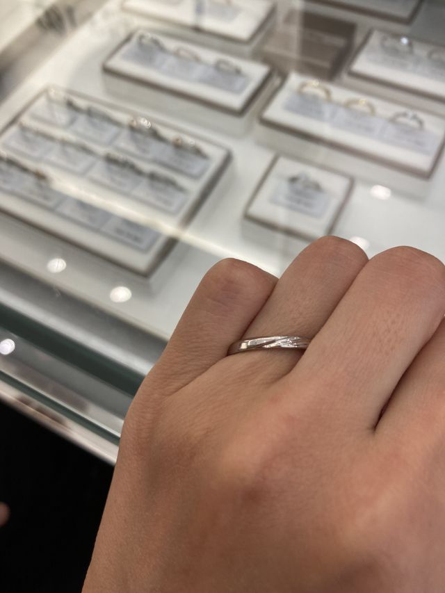 シンプルな指輪がいいと思いアイプリモのお店を選びました。自分の手の形や普段の服装から似合う指輪を選ぶ指輪診断をやっていたのもよかったです。とにかく着けている感じがしないくらいつけ心地がよかったです。たくさん指輪があったので悩みました。