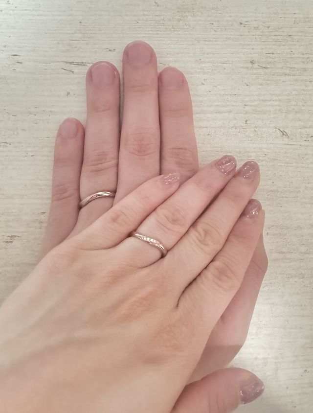 また、自分の指や服装に似合う指輪診断があったり、接客の合間に何度か2人だけでみる時間を作っていただけて、楽しみながら購入できました。