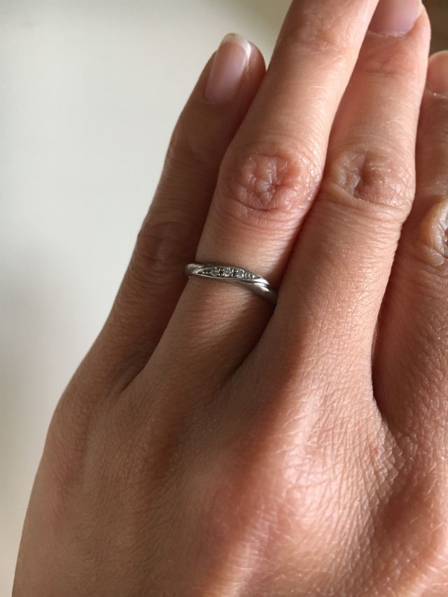 lucina(ルキナ)を購入しました。シンプルすぎず、少し洒落ているけど派手すぎないものを探していました。こちらのリングはねじったデザインで、女性のみ小さいダイヤが3つ付いていて可愛らしかったのでほぼ一目惚れでした。