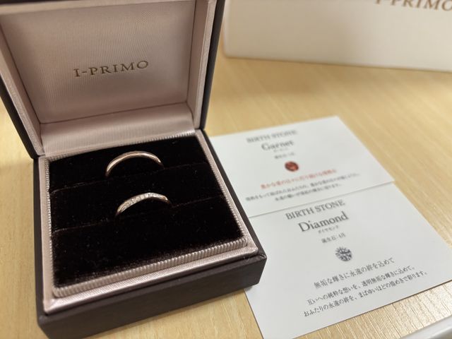 プラチナがあまり似合わず、指輪を迷い続けていた時に、ブラウンゴールドという、アイプリモだけにしかない色を知り、とても惹かれました。試着させていただいたときに自分の肌の色にとてもなじみ、これだ!と思いました。