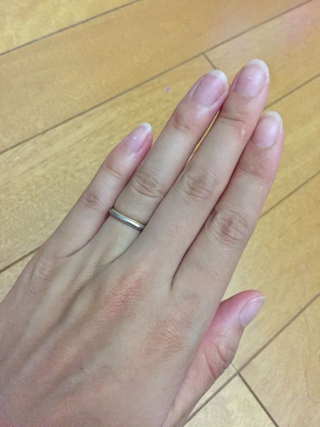 仕事柄強度の高い指輪を探しており、鍛造加工のされているこの指輪を選びました。外側はピンクゴールドで縁取りがされていてかわいらしい印象でした。