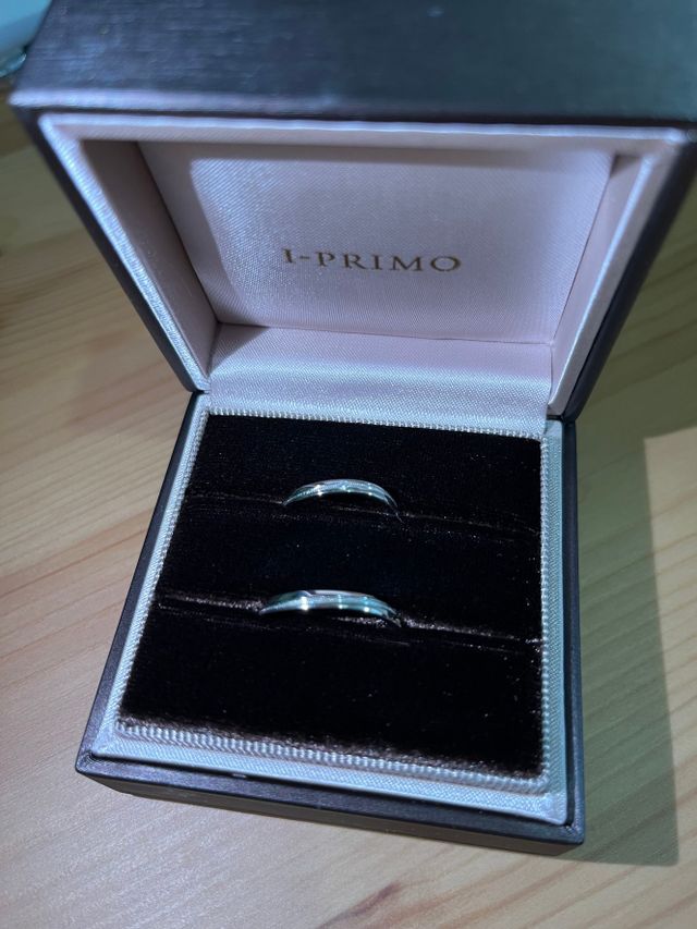 ウェーブの指輪で探していましたが、どのお店もほとんどが同じデザインで正直どこで買っても一緒だなと思ってたところでこの指輪と出会いました。ほとんどが男性の指輪は光っている部分とマットな部分のある指輪、女性の指輪はダイヤが1列ズラッと並んでいるものでした。しかし、私たちが選んだ指輪には、ラインがウェーブ上に入っていてダイヤが1つだけ、スゴくキレイに見え、男性の指輪にもラインが入っており、たくさん見てきた中で、最初で最後の指輪でした。アイプリモさんでしか出会うことのできなかった指輪でした!!