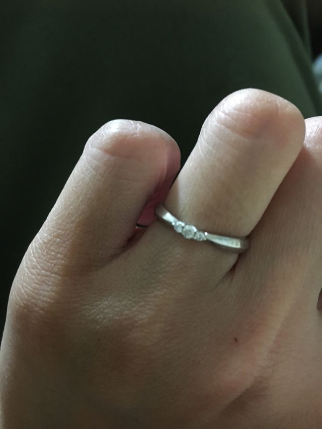 この指輪は小さい石が3つ付いていますが大きすぎる事もないので生活に支障もなく将来的にも上品だな。と気に入りました。